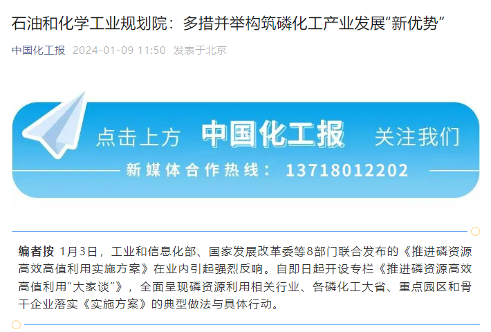 受工業(yè)和信息化部原材料工業(yè)司委托,2022-2023年石油和化學(xué)工業(yè)規(guī)劃院成立了專項(xiàng)工作組,進(jìn)行了深入研究,全程參與了《推進(jìn)磷資源高效高值利用實(shí)施方案》,石油和化學(xué)工業(yè)規(guī)劃院現(xiàn)就《實(shí)施方案》相關(guān)內(nèi)容解讀如下:
