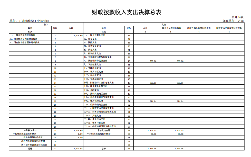 根據《中華人民共和國預算法》及其實施條例的相關規定規定,按照國資委2024年度所屬預算單位決算公開工作方案的要求,現將我院2024年度部門決算及相關內容公示如下: